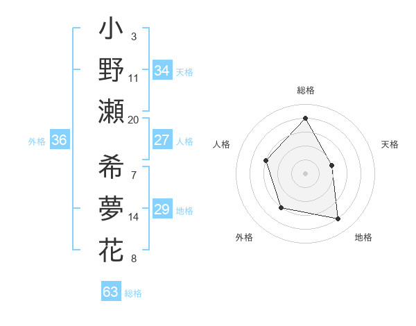 小野瀬 希夢花さんを姓名の画数から五運を鑑定