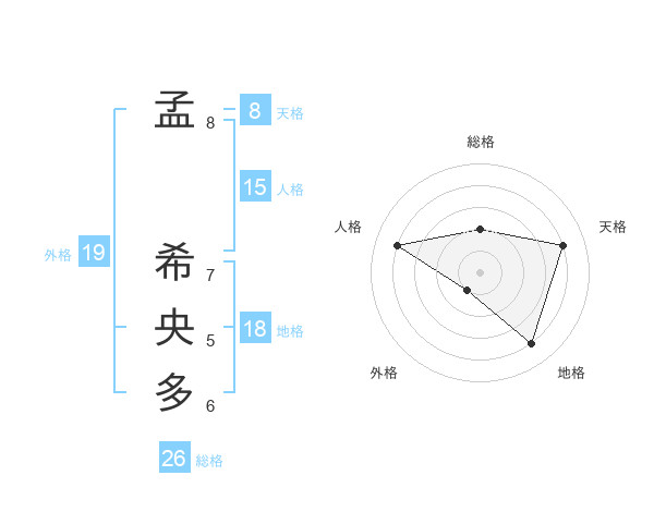 孟 希央多さんの天格は8画の4点!
