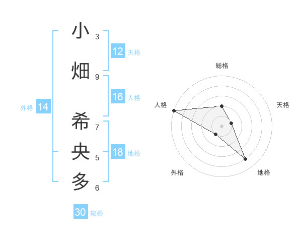 小畑 希央多さんの総格は30画の2点!