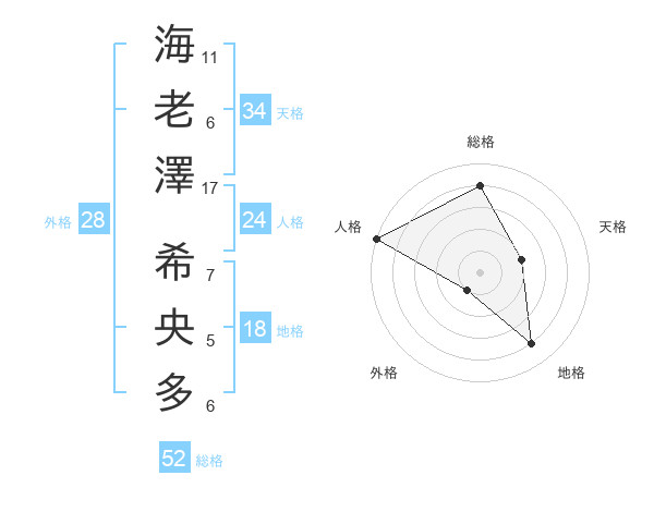 海老澤 希央多さんを姓名の画数から五運を鑑定
