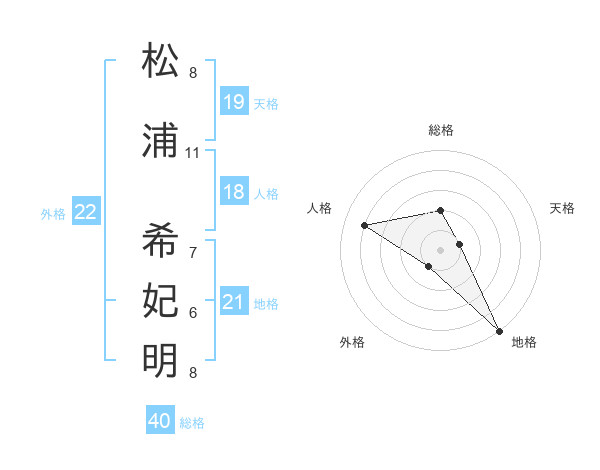 松浦 希妃明さんを姓名の画数から五運を鑑定