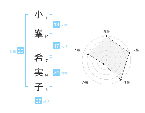 小峯 希実子さんの総格は37画の5点