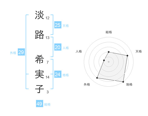 淡路 希実子さんを姓名の画数から五運を鑑定