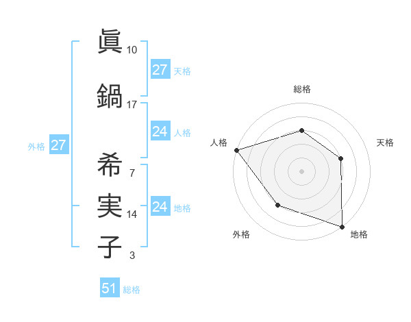 眞鍋 希実子さんの天格は27画の3点!