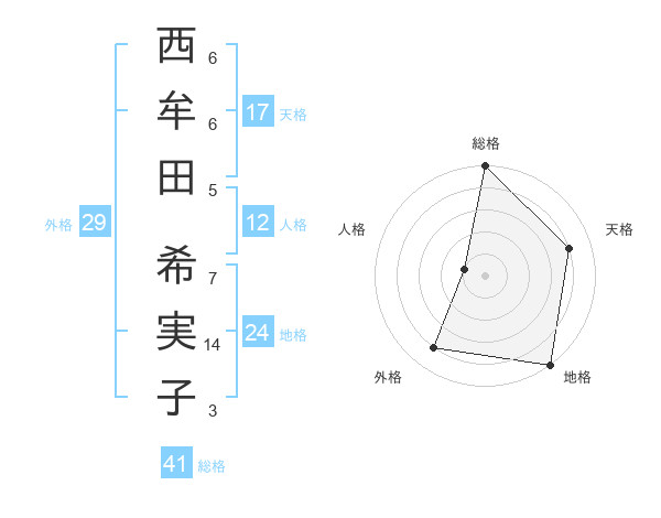 西牟田 希実子さんを姓名の画数から五運を鑑定