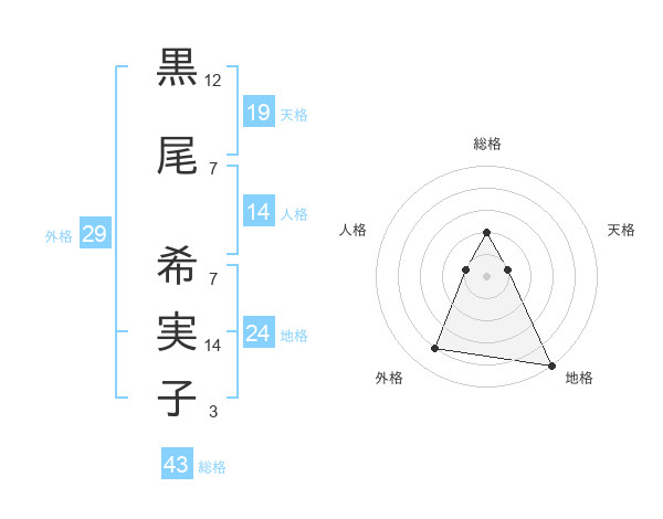 黒尾 希実子さんの総格は43画の2点!