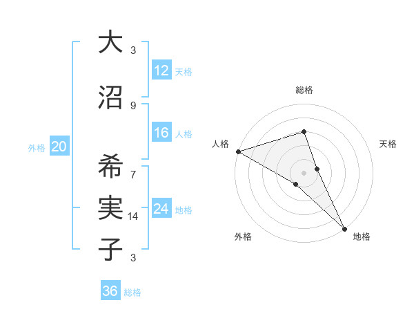 大沼 希実子さんを姓名の画数から五運を鑑定