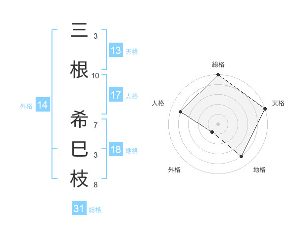三根 希巳枝さんを姓名の画数から五運を鑑定