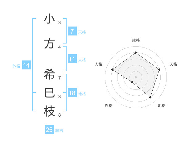 小方 希巳枝さんの総格は25画の4点