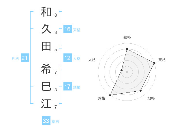 和久田 希巳江さんを姓名の画数から五運を鑑定