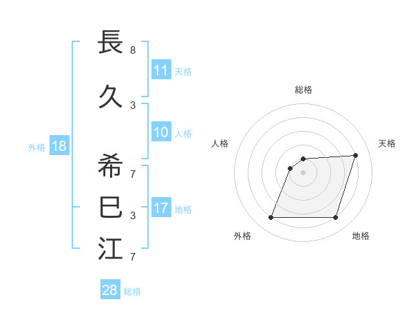 長久 希巳江さんを姓名の画数から五運を鑑定