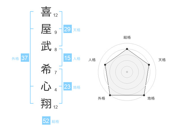 喜屋武 希心翔さんを姓名の画数から五運を鑑定
