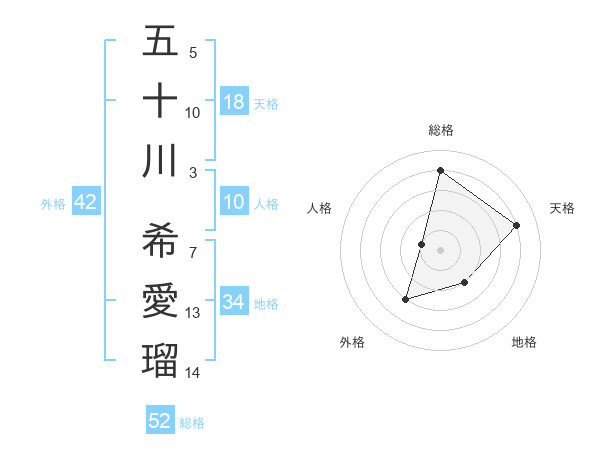 五十川 希愛瑠さんを姓名の画数から五運を鑑定