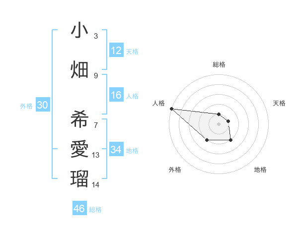 小畑 希愛瑠さんを姓名の画数から五運を鑑定