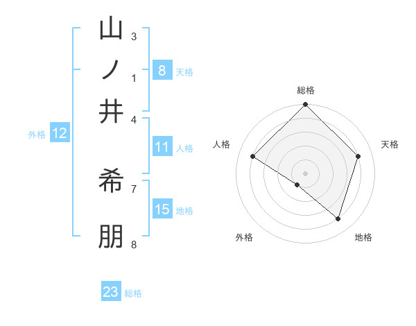山ノ井 希朋さんを姓名の画数から五運を鑑定