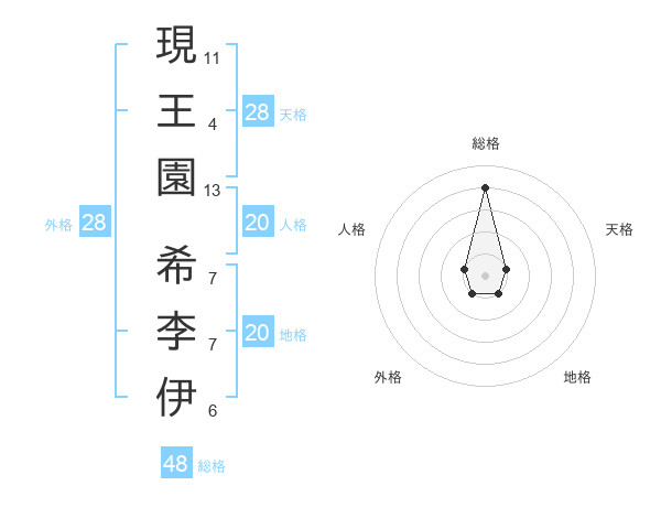 現王園 希李伊さんを姓名の画数から五運を鑑定