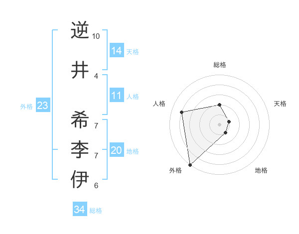 逆井 希李伊さんを姓名の画数から五運を鑑定