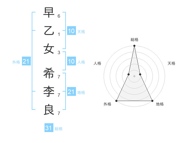 早乙女 希李良さんを姓名の画数から五運を鑑定