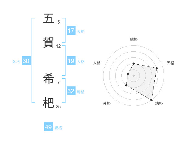 五賀 希杷さんの地格は32画の5点!
