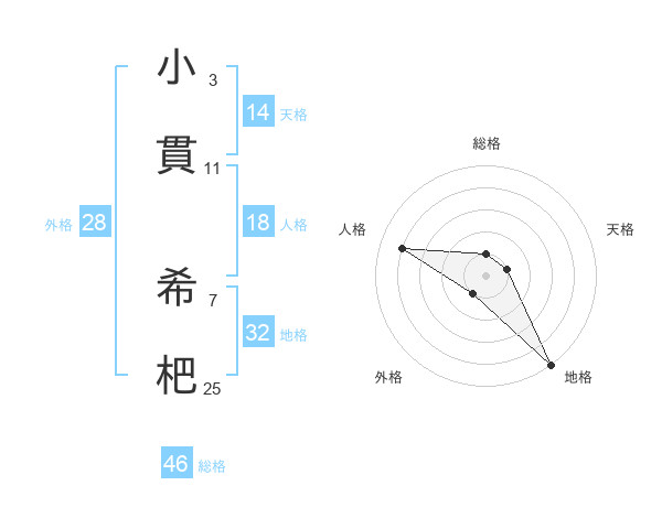 小貫 希杷さんを姓名の画数から五運を鑑定