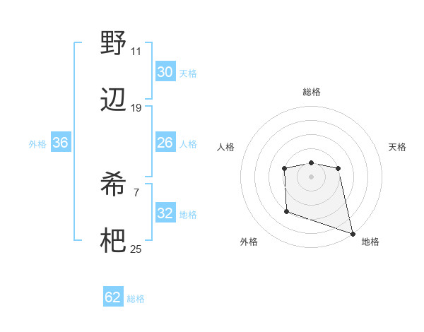 野辺 希杷さんの総格は62画の1点!