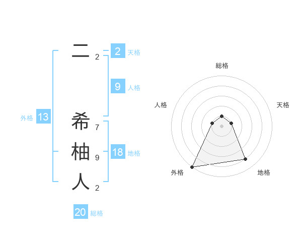 二 希柚人さんの外格は13画の5点!