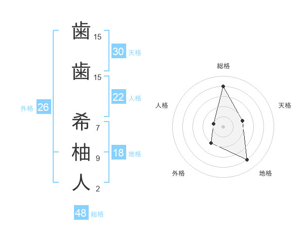 歯歯 希柚人さんの総格は48画の4点!