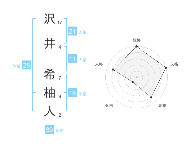 沢井 希柚人さんを姓名の画数から五運を鑑定