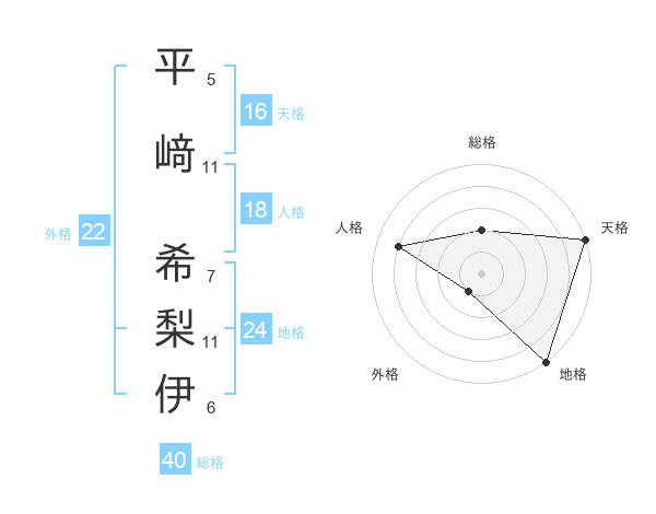 平﨑 希梨伊さんの天格は16画の5点!