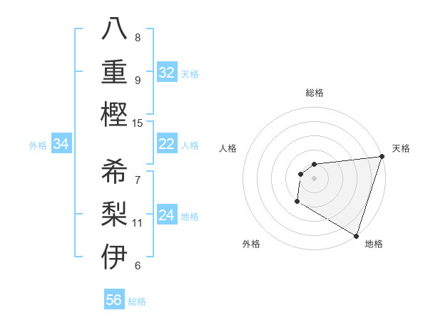八重樫 希梨伊さんを姓名の画数から五運を鑑定