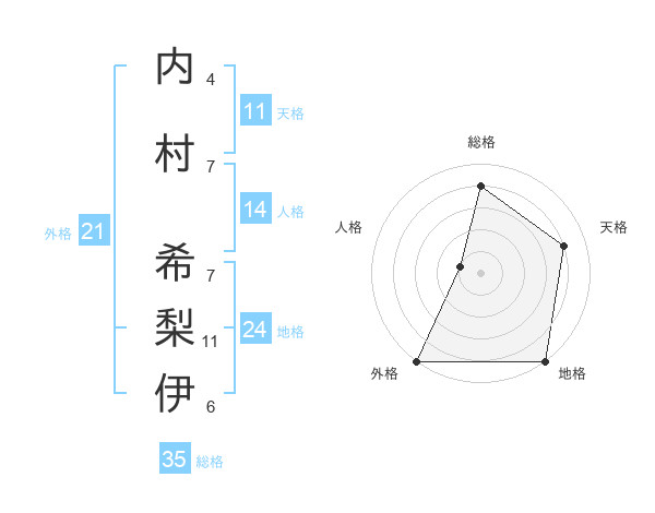 内村 希梨伊さんを姓名の画数から五運を鑑定
