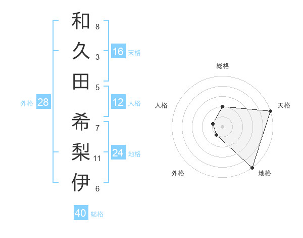 和久田 希梨伊さんを姓名の画数から五運を鑑定