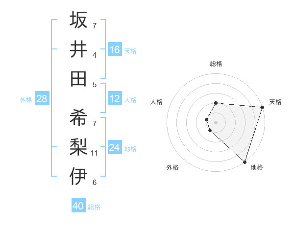 坂井田 希梨伊さんの天格は16画の5点!