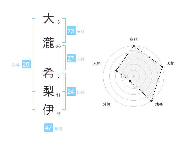 大瀧 希梨伊さんを姓名の画数から五運を鑑定