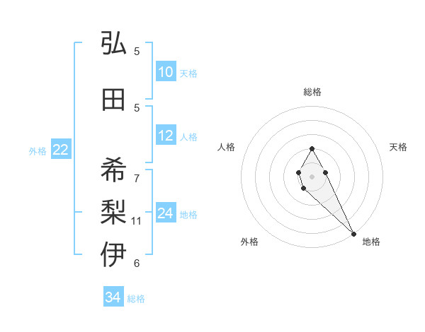 弘田 希梨伊さんを姓名の画数から五運を鑑定