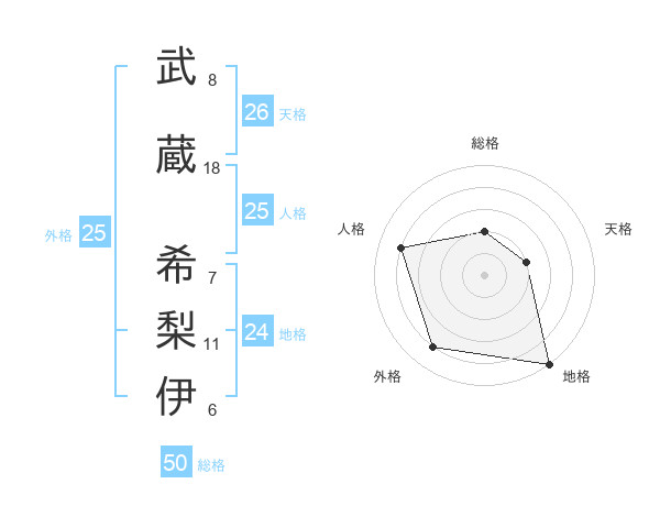 武蔵 希梨伊さんの総格は50画の2点!