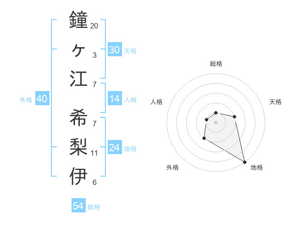 鐘ヶ江 希梨伊さんの総格は54画の1点