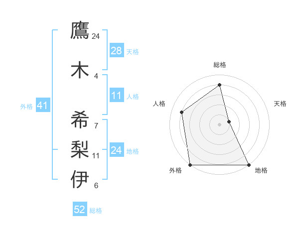 鷹木 希梨伊さんを姓名の画数から五運を鑑定