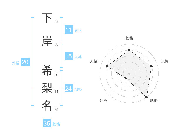 下岸 希梨名さんを姓名の画数から五運を鑑定