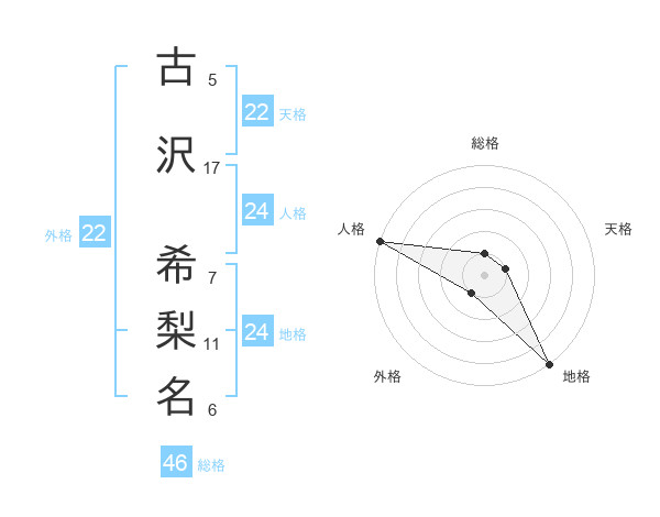 古沢 希梨名さんを姓名の画数から五運を鑑定