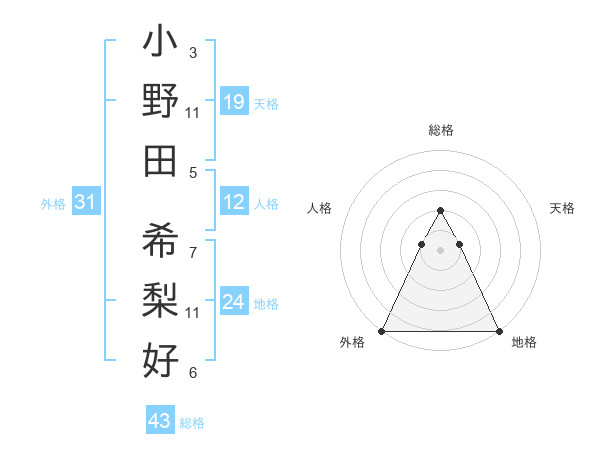 小野田 希梨好さんを姓名の画数から五運を鑑定