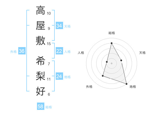 高屋敷 希梨好さんを姓名の画数から五運を鑑定