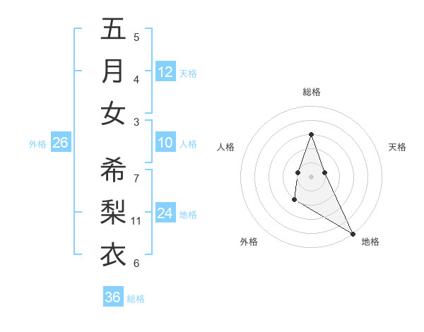 五月女 希梨衣さんを姓名の画数から五運を鑑定