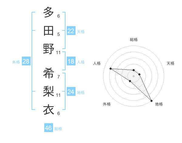 多田野 希梨衣さんを姓名の画数から五運を鑑定