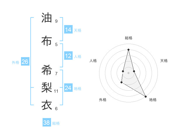 油布 希梨衣さんの総格は38画の4点!