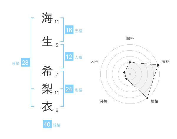海生 希梨衣さんの地格は24画の5点!