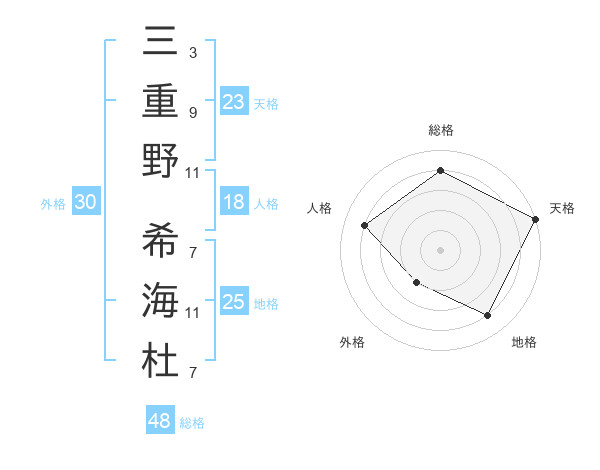 三重野 希海杜さんを姓名の画数から五運を鑑定