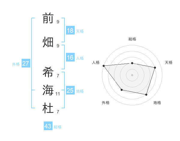 前畑 希海杜さんの総格は43画の2点!