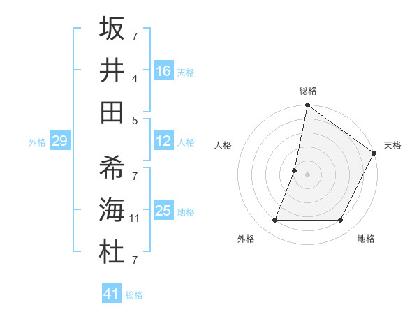 坂井田 希海杜さんを姓名の画数から五運を鑑定