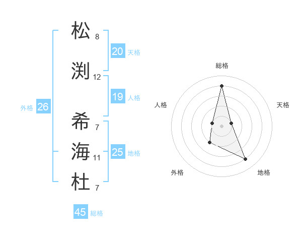 松渕 希海杜さんの総格は45画の4点!